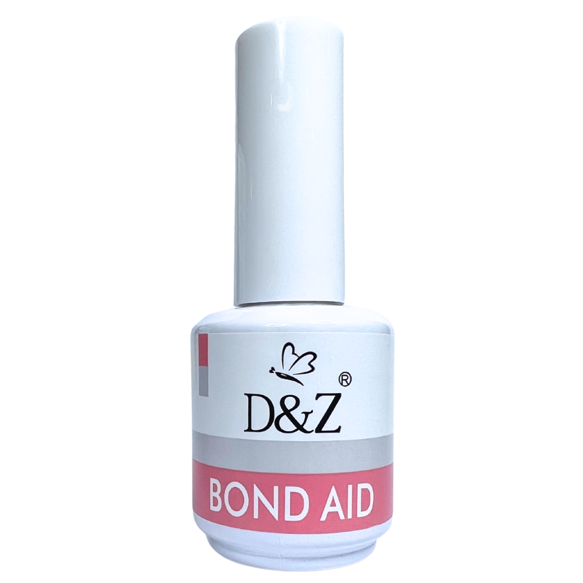 BOND AID D&Z - Aplique uma camada de Bond Aid, uma pré-base para ampliar o potencial de fixação do gel às unhas. Após aplicar em todas as unhas de uma mão, deixe-a secar 30 segundos na cabine Uv/Led.
