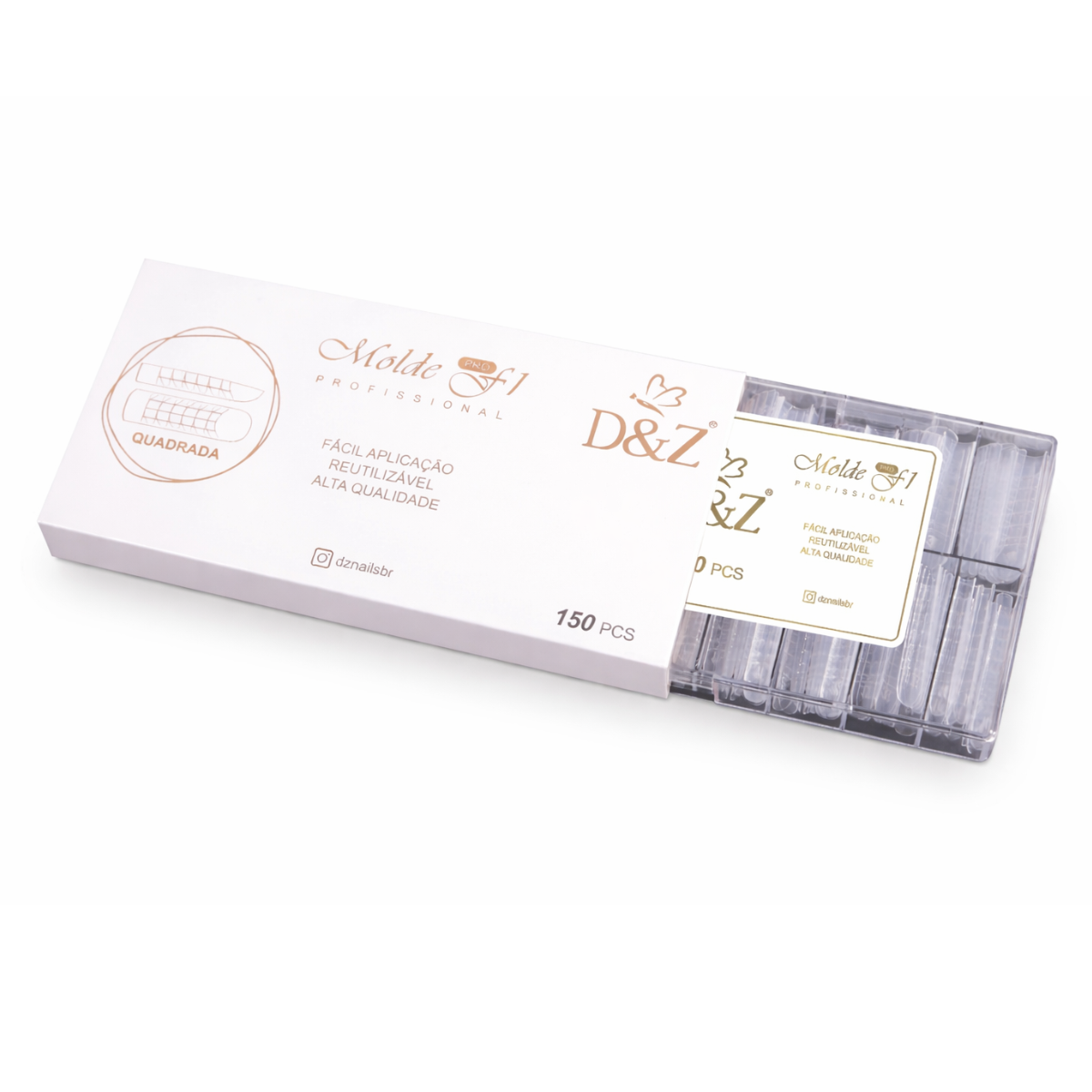 O Mold F1 0mm da D&Z é um molde reutilizável desenvolvido para alongamento em gel diretamente sobre a unha natural, sem necessidade de tips tradicionais. Seu formato 0mm permite construir alongamentos finos e naturais desde a base, garantindo melhor controle da espessura e do formato da unha.